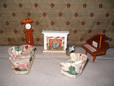 Doll house furniture. Not just any doll house furniture, though. You see, the value of garage sale treasure is not just in the item itself, but in how little you have to pay for it. The less it costs the higher it's value. And this is where my gift becomes so special to me. I got all this lovely doll house goodness for... (DUN DUN DUN)... a dollar. No, not a dollar a piece. One dollah! For all of it!!!